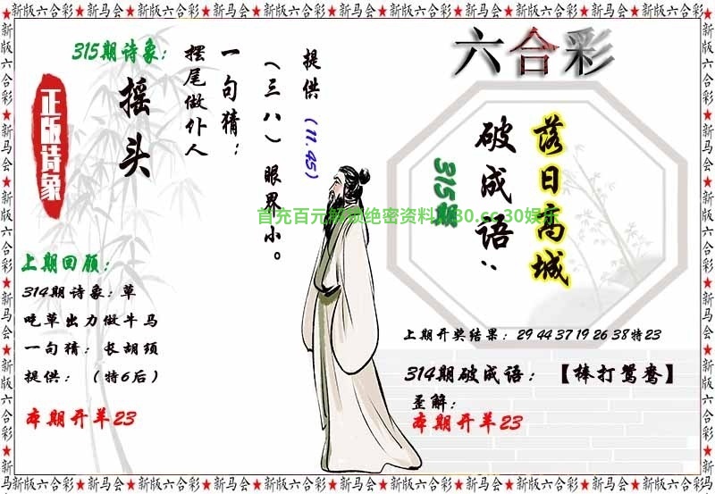 | 314期 | 1-2-3-4-5-6-8 | 羊23准 |